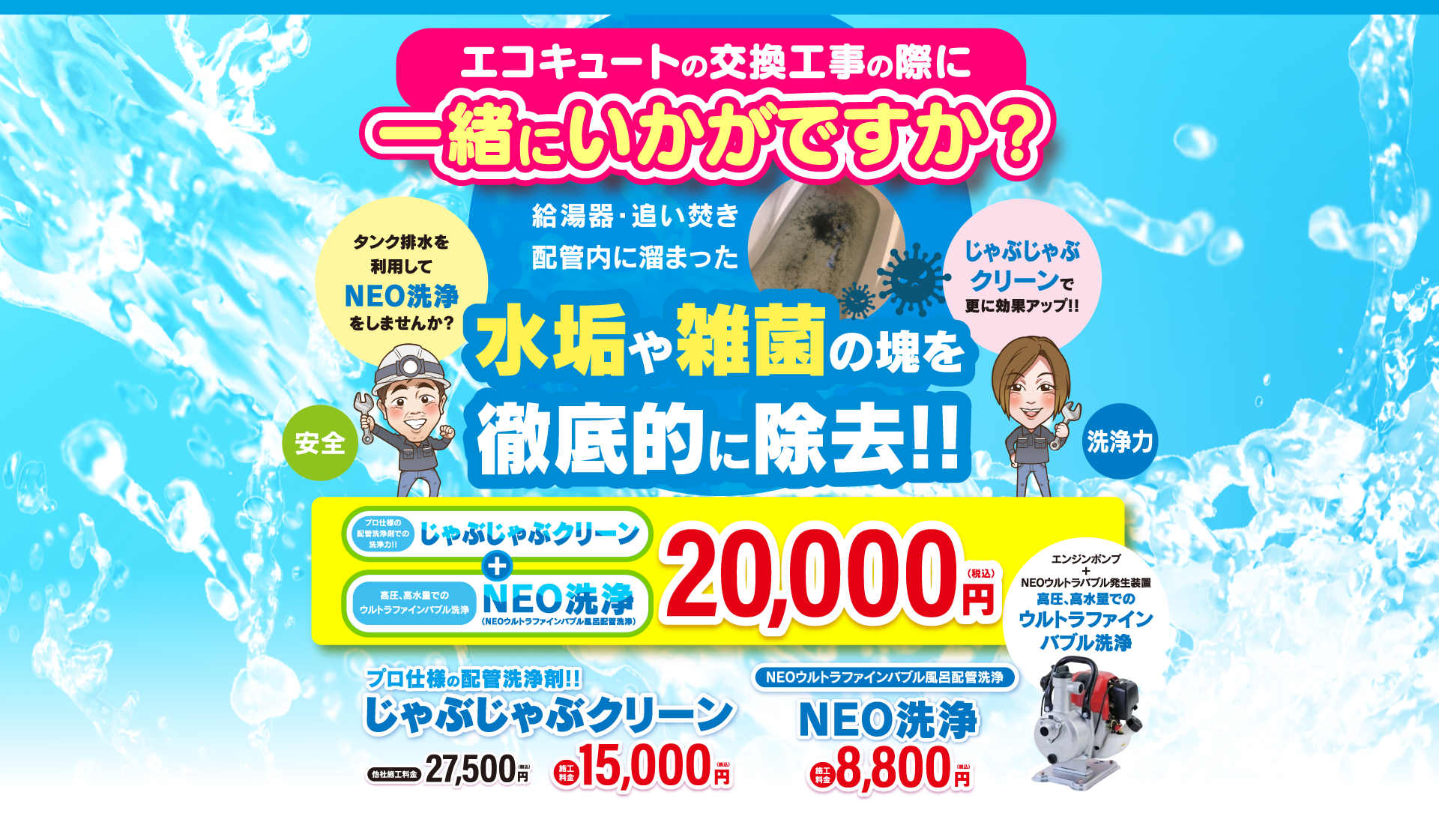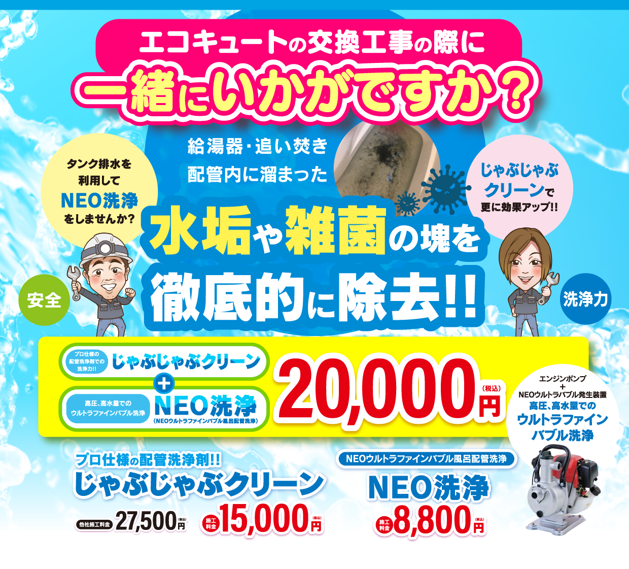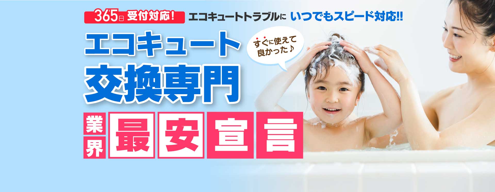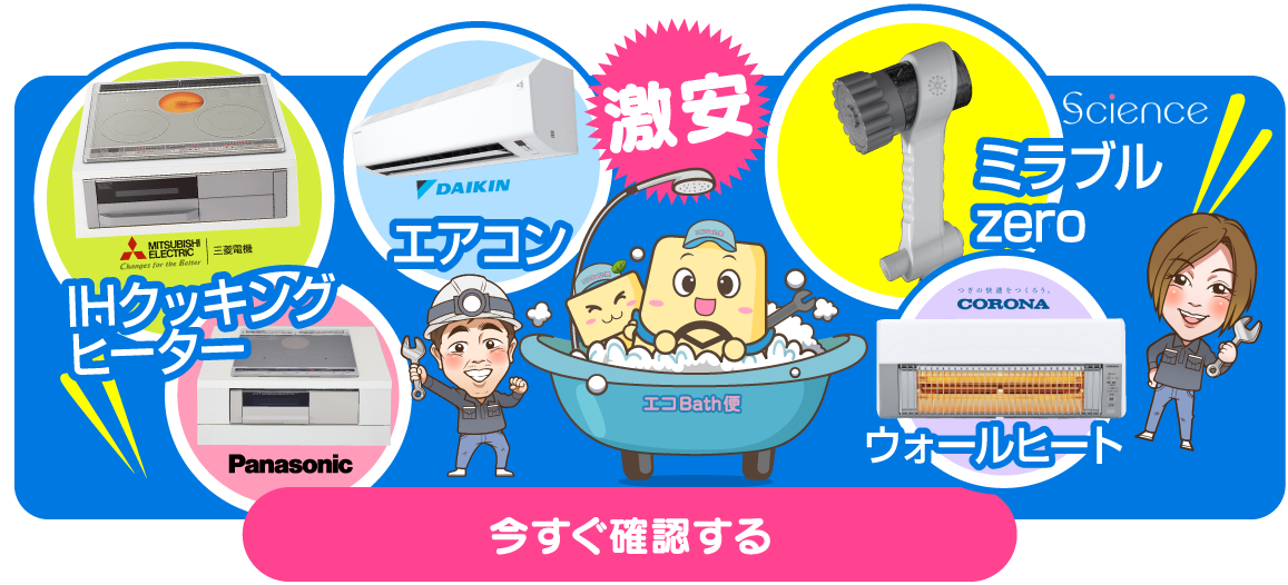エコキュート工事はお任せ下さい!エコBath便(エコバス便)はエコキュート交換専門です。日曜・祝日にも対応!急ぎの翌日スピード工事もお任せ下さい。たくさんのエコキュート工事の実例をご紹介します。