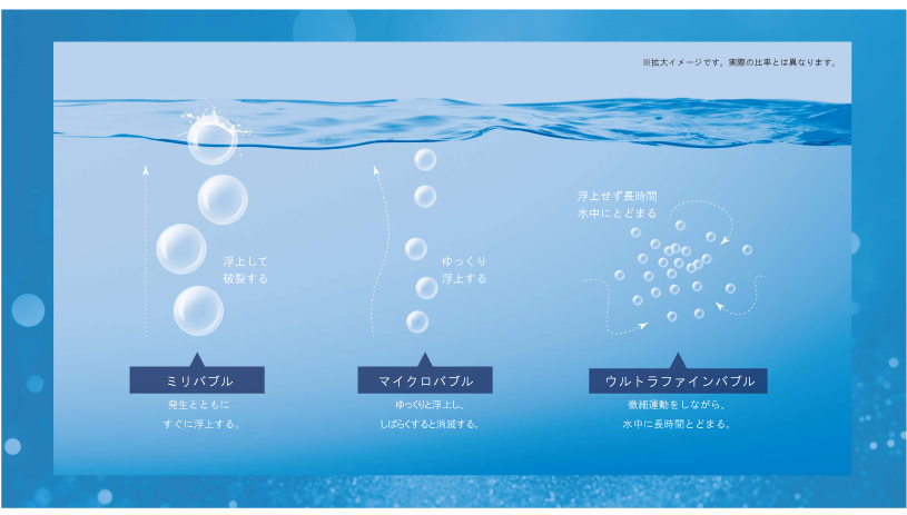 肌の毛穴よりはるかに小さいマイクロバブルと、それよりもさらに小さいウルトラファインバブル。 特別な2種類の泡が肌をやさしく包み込み、うるおし、体をじんわりあたためる。まるで温泉のように白濁したシルキーなお湯に包まれて、至福のリラックスタイムへ。もっと美しく健やかな明日へと誘います。